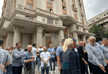 Punonjësit e DAP protestojnë para Ministrisë së Financave