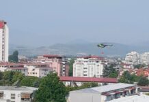 Zjarret në rajonin e Sarajit, helikopterët furnizohen me ujë në Lumin Vardar