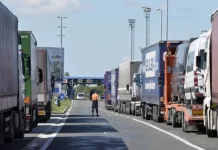 Kolonë e gjatë me kamionë është krijuar këtë pasdite në terminalin doganor në Bllacë, njofton TV21.
