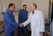 Propaganda e Putinit, vesh bluzën e bardhë dhe takon në spital ushtarët e plagosur