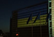 9 maji – Ndërtesat e Bashkimit Evropian ndriçohen me ngjyrat e Ukrainës (VIDEO)