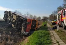 Një tren ka dalë nga binarët pas goditjes së një automjeti në jug të Hungarisë të martën, 5 prill, duke lënë të vdekur dhe...
