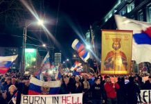 Serbët me flamuj të...