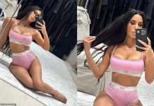 Kim Kardashian shfaq belin e saj të hollë me të brendshme rozë për një...