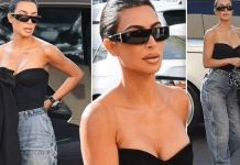 Kim Kardashian thekson linjat e formësuara të trupit gjatë një tjetër paraqitje në Los...