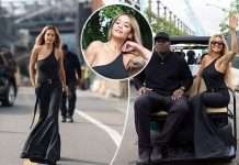 Ledina Çelo thekson linjat trupore në fustanin e zi transparent