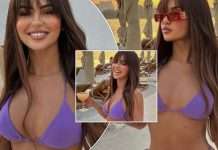 Kida mahnit me figurën trupore në bikini ngjyrë vjollcë