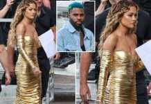Rita Ora u sigurua që të gjithë sytë të ishin tek ajo teksa doli dje e veshur me një fustan ari të ngushtë.