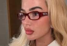 Në një postim në rrjetet sociale, Elita është shfaqur me syze...