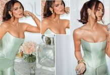 E veshur me një kostum ngjyrë të gjelbër, në pah iu theksuan...