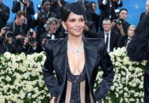 Aktorja Halle Berry mori pjesë në “Met Gala 2025” me një paraqitje më të guximshme deri tani – një fustan transparent me vija.