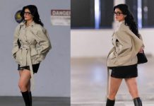 Kylie Jenner mahnit me stilin e saj me pallto dhe çizme, gjatë një daljeje...