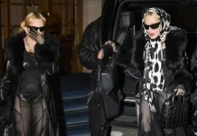Madonna tërhoqi vëmendjen me një fustan të zi dhe një pallto të gjatë lëkure, teksa doli në Paris të dielën.