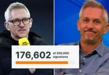Mbi 175,000 njerëz kanë nënshkruar një peticion për të rikthyer Gary Lineker ‘BBC’.