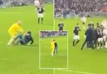 Portieri i Sevillas, Marko Dmitrovic shmangu një sulm të madh nga një tifoz që pushtoi fushën, gjatë ndeshjes së skuadrës së tij në Ligën...
