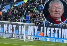 Përmes një pankarte, tifozët e Cityt u tallën keq me Sir Alex Fergusonin