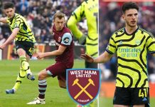Declan Rice ishte një nga lojtarët më të mirë në fushë në derbin e Londrës ku Arsenali turpëroi West Hamin me rezultat 0-6.