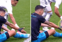 Skena teatrale nga Luis Suarez kur kundërshtari ia mori atleten që e zbathi uruguaiani