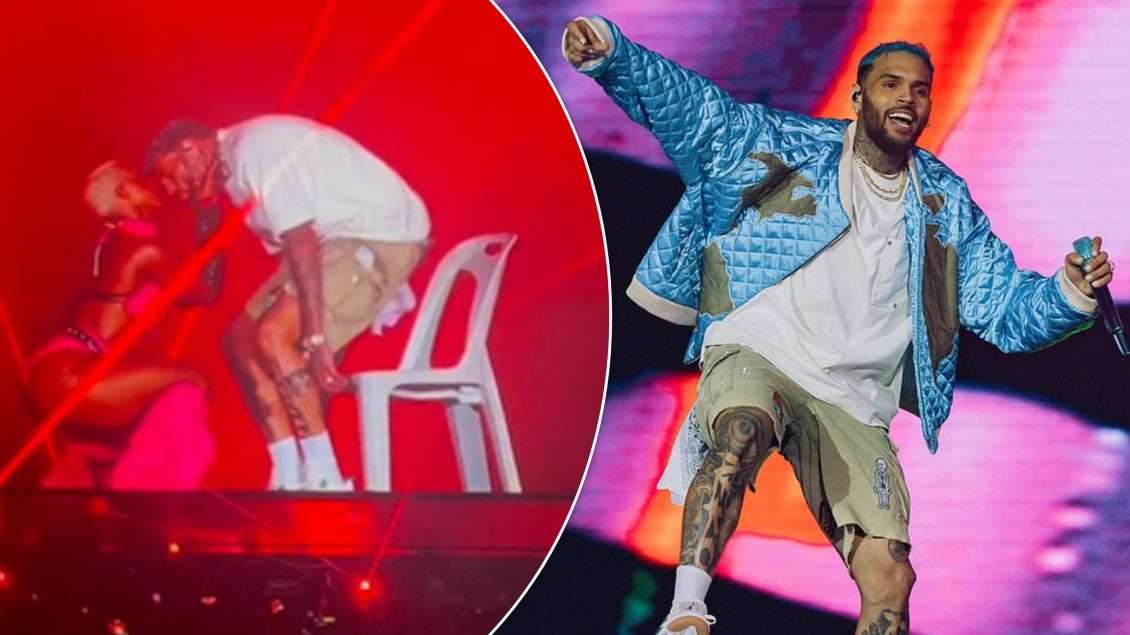 Gjatë festivalit të së premtes në mbrëmje, Chrisit iu bashkua një balerin mbështetëse me veshje rozë e cila bënte vallëzimet sensuale përreth tij, këngëtari i R&B më pas u përkul sipër balerinës dhe i dha një puthje përpara se të vazhdonte rutinën.