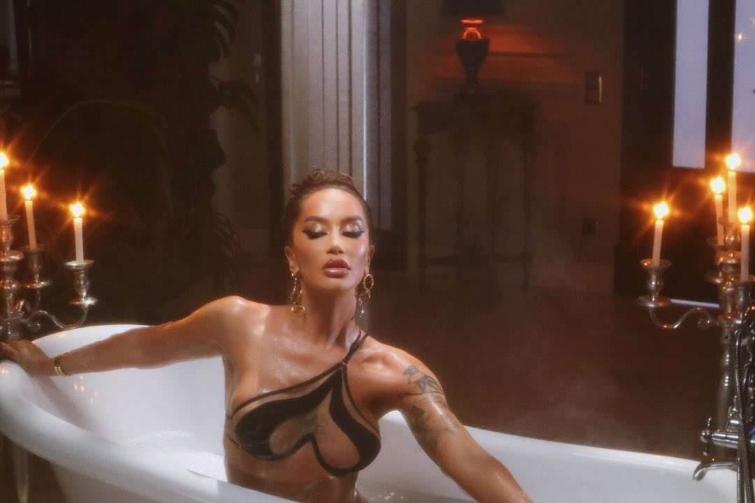 Ajo ka veshur të brendshme të zeza të cilat janë super të detajuara, e që nuk mbulojnë shumë, duke e bërë artisten të duket tejet seksi.
