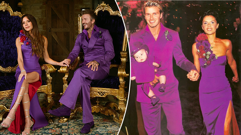 David dhe Victoria Beckham rikrijojnë veshjet e tyre të famshme të dasmës, të cilat ishin ngjyrë vjollcë