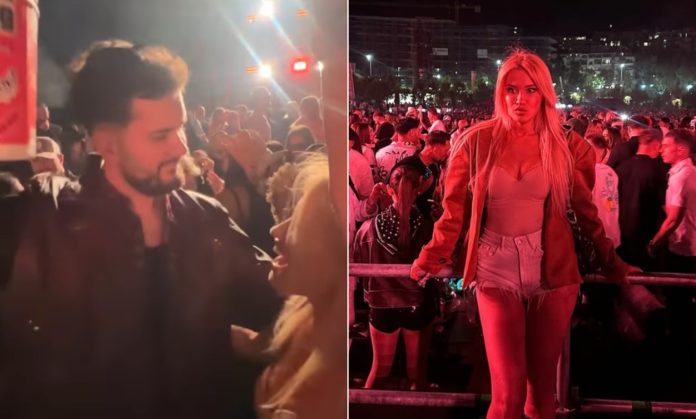 Në pamjet e ndara nga një koncert në Tiranë, Dea shihet duke kërcyer dhe shijuar atmosferën, por ajo që tërhoqi më shumë vëmendjen ishte praninë e një djali të panjohur në krahët e saj.