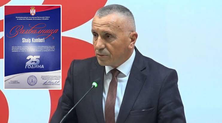 Trupi Koordinues i Qeverisë së Republikës së Serbisë, me rastin e shënimit të 25-vjetorit të themelimit të tij, u ka ndarë mirënjohje disa personave për të cilët vlerëson se kanë dhënë kontribut për paqen dhe stabilitetin në komunat Preshevë, Bujanoc dhe Medvegjë. Ndër fituesit e kësaj mirënjohjeje jam edhe unë, në cilësinë e deputetit në Kuvendin Popullor të Republikës së Serbisë.