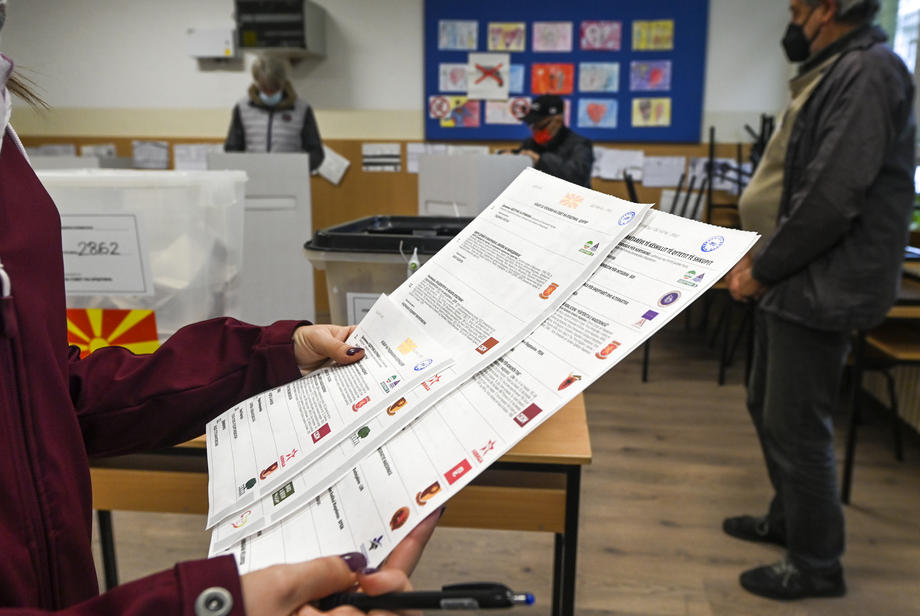 epa09528387 A young girl cheeks the ballots at the polling station in Skopje, Republic of North Macedonia, 17 October 2021. 1,824,864 citizens have the right to vote. For the first time in these elections, the identity of the voters will be checked with devices for biometric identification of the fingerprint. Before you can exercise your voting right, your fingerprint will first have to match that of the database inserted in the identification device. EPA-EFE/GEORGI LICOVSKI