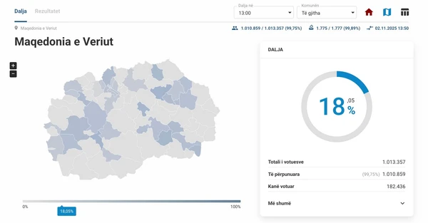 Komisioni Shtetëror i Zgjedhjeve ka deklaruar se deri në ora 13:00 jehona e votuesve është 18,05 %.