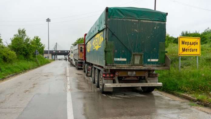 Në pikën kufitare në Merdare, në territorin e Serbisë, janë duke pritur rreth 60 kamionë për të hyrë në Kosovë.