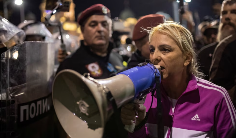 Përgjatë protestës, Dijana Hërka i është drejtuar policisë me megafon, duke thënë se ky institucion do të fajësohet për incidentet.