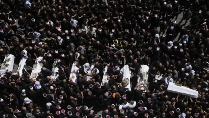 Mijëra njerëz kanë marrë pjesë në funeralet e 11 nga 12 të rinjtë e vrarë në një sulm me raketa nga Libani që goditi një fushë futbolli në Lartësitë Golan të kontrolluara nga Izraeli.