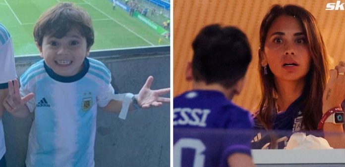 Ndërsa Lionel Messi udhëhoqi Argjentinën në një fitore 2-1 ndaj Australisë në 1/16 e finales së Kupës së Botës, djali i tij Mateo u pa duke iu hedhur çamçakëz tifozëve.