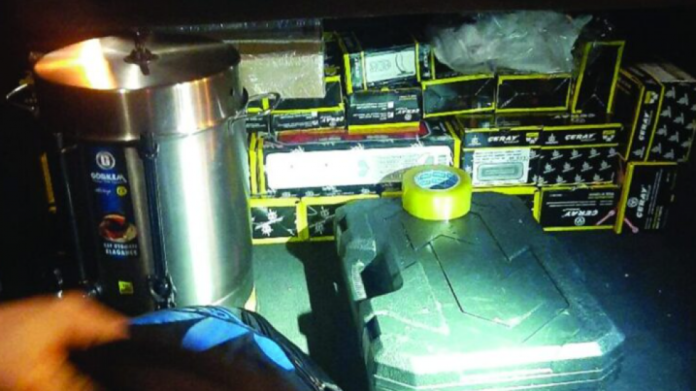 Gjatë kontrollit janë gjetur gjithsej 516 pjesë të ndryshme kamioni brenda sediljeve të pasme, poshtë dhe ndërmjet sediljeve dhe në bagazhin pranë gomës rezervë.