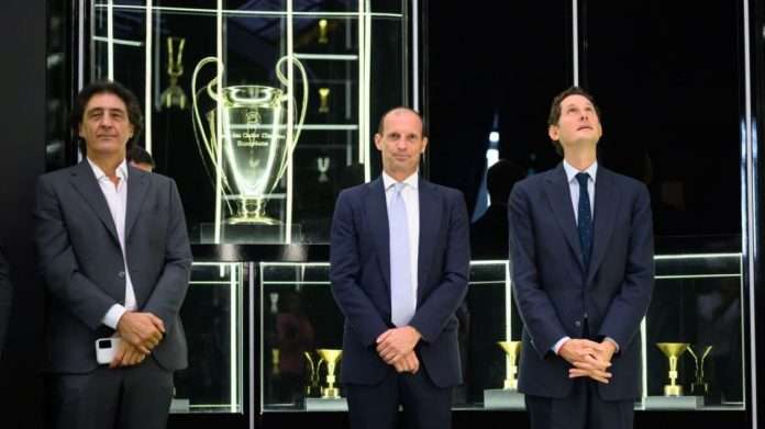 Elkann dhe Allegri, së bashku me Presidentin Massimo Ferrero dhe drejtorin sportiv Cristiano Giuntoli ishin të pranishëm në hapjen e dhomës së re të trofeve në muzeun e klubit bardhezi.