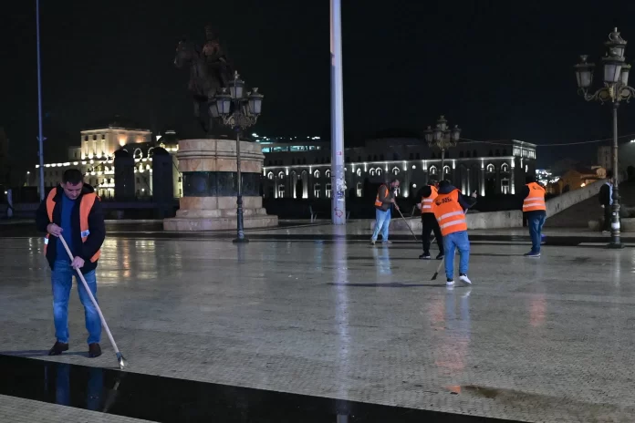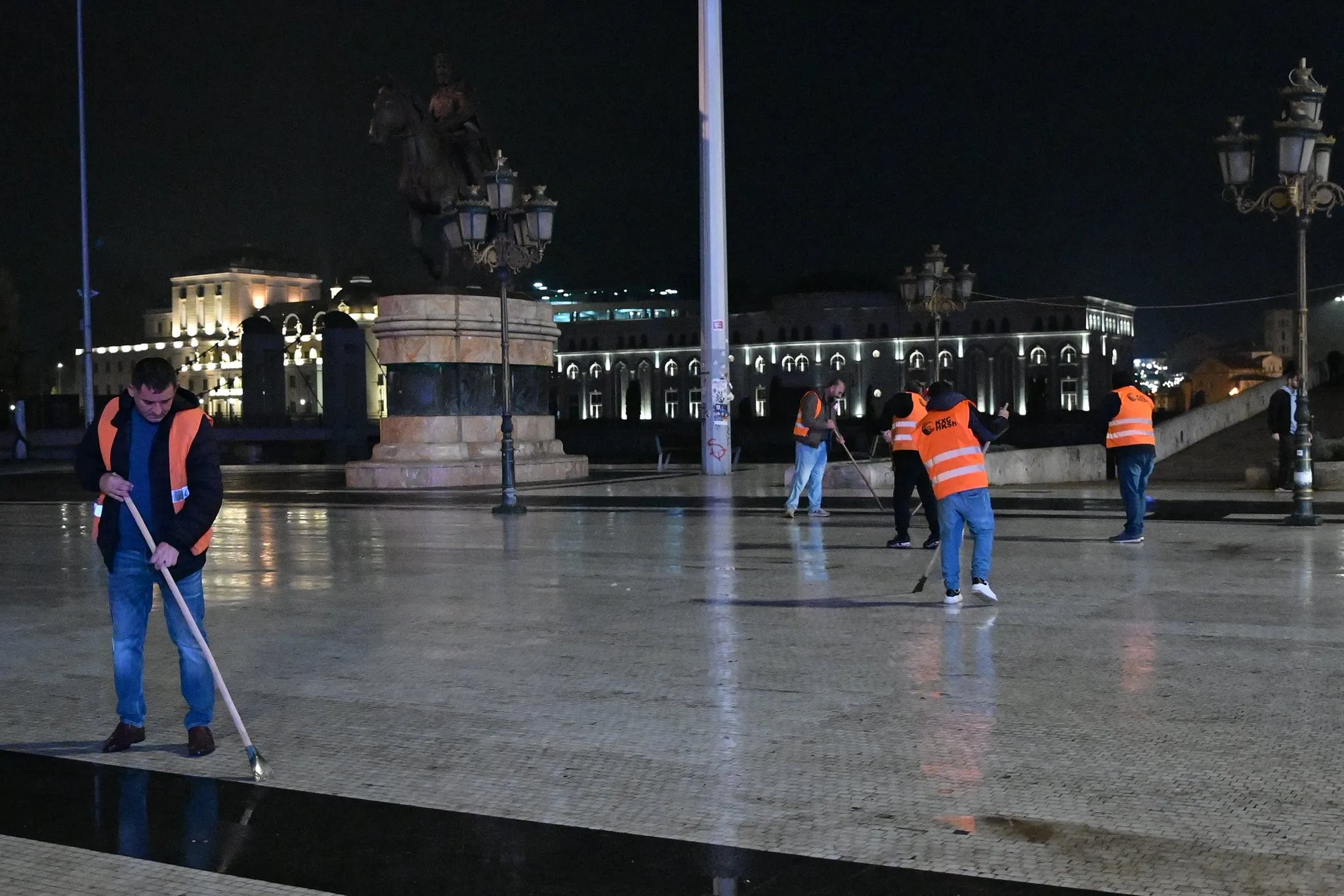 Në mbrëmjen e 6 nëntorit vendparkimi para Qendrës Sportive “Boris Trajkovski” i ngjasonte një baze të improvizuar për “shpëtimin” e qytetit nga mbeturinat. Dritat e dhjetëra kamionëve dhe dritat rotulluese të automjeteve të higjienës komunale e ndriçuan të gjithë hapësirën atje. Automjetet ishin në gatishmëri. Sipër tyre fluturonte një dron.