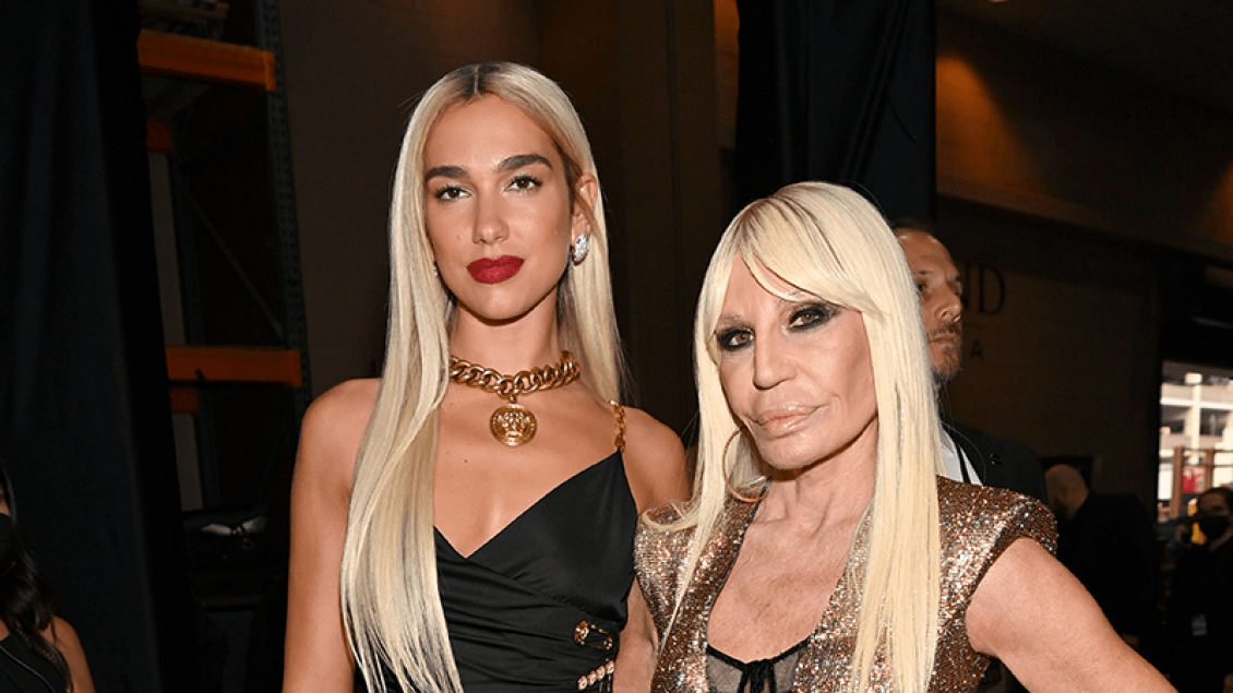 Në foton e publikuar Dua dhe Donatella shihen përkrah njëra-tjetrës ndërsa artistja shkëlqen me një fustan me prerje tek shpinë, aksesor dhe flokët e lidhura.