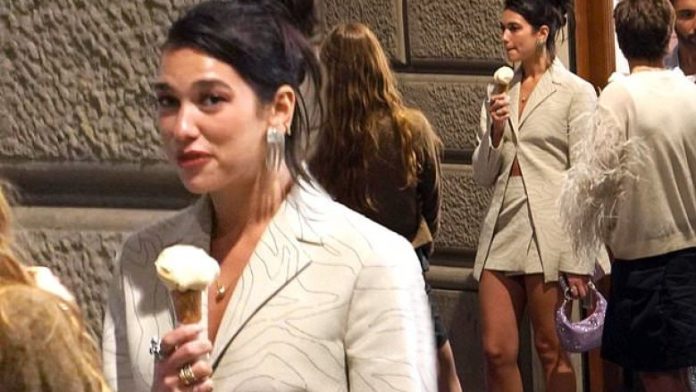 Dhe Dua Lipa e shfrytëzoi sa më shumë kohën e qëndrimit në Itali teksa shijoi një akullore në Firence të Italisë të martën, shkruan DailyMail.