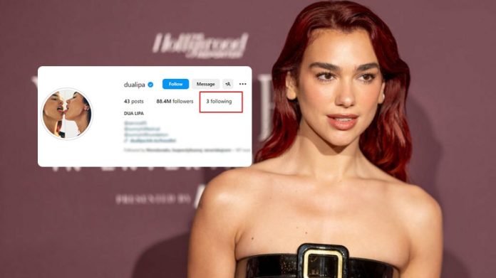 Në një kohë kur prezencat në rrjetet sociale janë të rëndësishme në krijimin e imazhit të një ylli, Dua Lipa ka marrë një vendim befasues duke hequr të gjithë personat që ndiqte nga lista e saj e ndjekësve në Instagram, dhe duke lënë vetëm tre llogari.