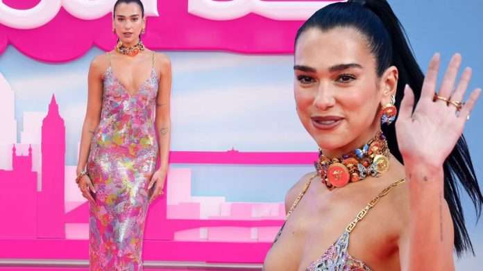 Dua Lipa dukej e mahnitshme me një fustan të tejdukshëm diamant i rremë ndërsa mori pjesë në premierën e mbushur me yje në Mbretërinë e Bashkuar të “Barbie” në Londër të mërkurën (12 korrik).