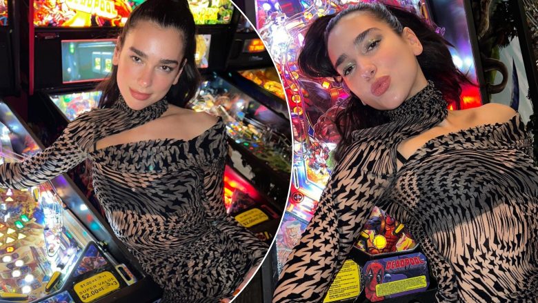 Këngëtarja “Levitating” postoi një sërë fotosh të premten (11 mars) kombinoi fustanin e tejdukshëm me detaje yjesh sipër me geta të ngjashme dhe një sytjena të zezë, duke u mbështjellë mbi një makinë pinball për një natë argëtuese.