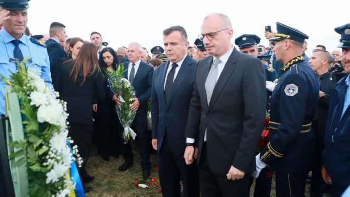 Ministri i Punëve të Brendshme të Shqipërisë, Taulant Balla dhe ministri i Jashtëm shqiptar, Igli Hasani, kanë marrë pjesë në varrimin e policit Afrim Bunjaku.