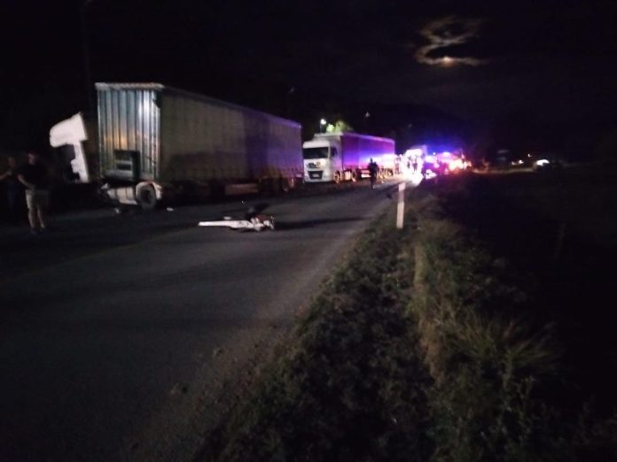 “Sonte (12 shtator) në ora 21:20 në SPB Tetovë është raportuar se në rrugën magjistrale Gostivar-Kërçovë ka ndodhur një aksident trafiku në mes të automjetit të pasagjerëve ,,BMW” me targa të Demir Kapisë i drejtuar nga B.H. (54). nga Gostivari dhe një Mjet Tërhjekës ,,Skania” me targa të regjistrimit të Kosovës, i drejtuar nga A.T (60) nga Kosova. Në aksident ka mbetur i plagosur rëndë drejtuesi i mjetit B.H. i cili ka ndërruar jetë në vend dhe pasagjeri T.R. (53) nga Gostivari, i cili pas aksidentit është transferuar në qendrën emergjente në Gostivar ku i’u ka nënshtruar lëndimeve të marra dhe ka ndëruar jetë. Drejtuesi i kamionit tërheqës ka pësuar lëndime trupore. Kontrollin në vendngjarje e kryen ekipi i DPB-së Gostivar së bashku me Prokurorin Publik”, njoftoi SPB Tetovë.