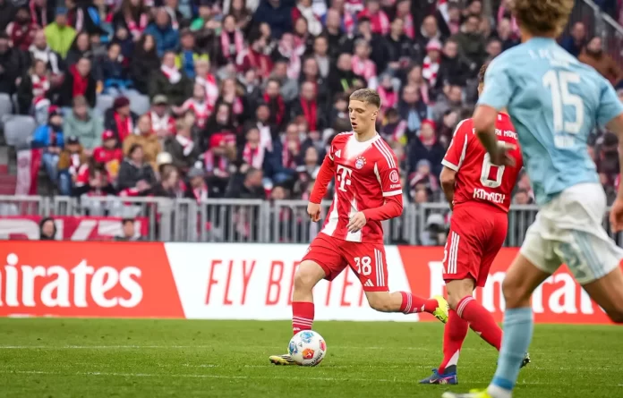 16-vjeçari e zëvendësoi Leon Goretzkan në mesfushë në minutën e 87-të, në fitoren e thellë 4:0 të Bayern Munichut ndaj Union Berlinit.