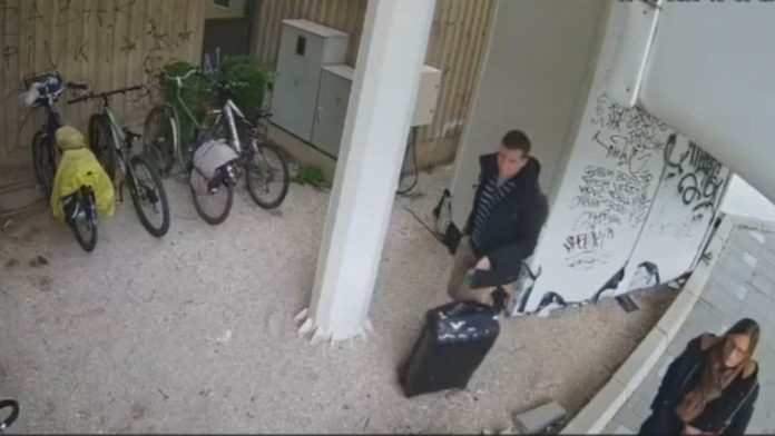 “Plusinfo” ka publikuar ekskluzivisht dy video, që tregojnë një burrë dhe një grua që i afrohen ngadalë parkingut të biçikletave, nën tabelën e madhe të partisë VMRO-DPMNE, duke shikuar përreth dhe lart. Burri e lë shpejt valixhen e zezë pranë biçikletave të parkuara dhe të dy largohen shpejt nga vendi.