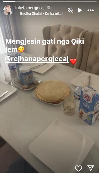 Së fundmi, Lulja ka ndarë në llogarinë e saj në rrjete sociale një moment të këndshëm familjar, duke treguar se vajza e tyre kishte përgatitur mëngjesin për prindërit.