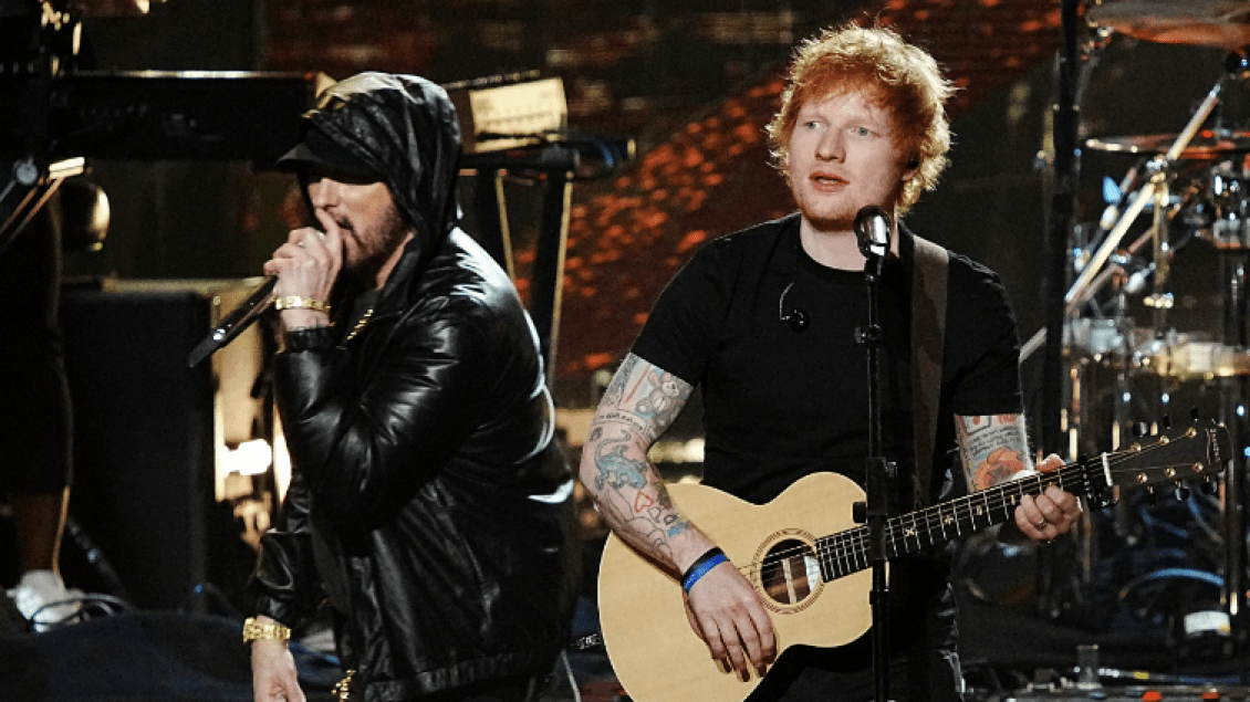 Krijuesi i hitit “Thinking Out Loud”, 32 vjeç, doli në skenë për të performuar një versione ripërpunuar të hitit të Eminem “Lose Yourself”.