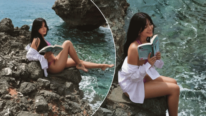 Efi Dhedhes ka tërhequr sërish vëmendjen e ndjekësve me fotografi magjepsëse, ku shfaqet duke lexuar një libër mbi shkëmbinj, buzë detit.
