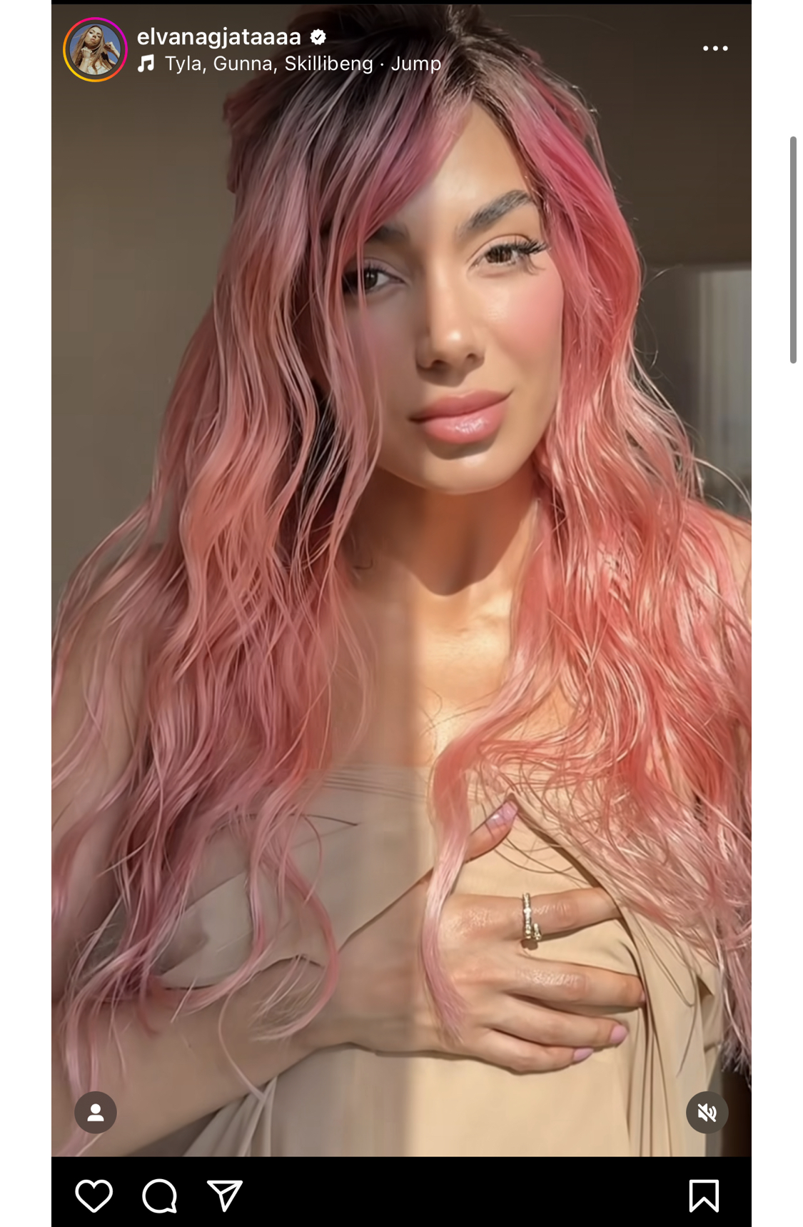 Ajo ka postuar një video në Instagram ku shfaqet me flokët rozë të gjata, ndryshe nga shumë vajza të tjera të estradës, të cilat i kanë bërë flokët të kuqe si qershi.