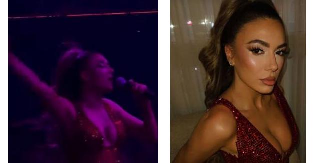 Këngëtarja e njohur është shfaqur në një mbrëmje muzikore me një fustan të kuq vezullues, i cili binte në sy për xixat që e mbulonin tërësisht.